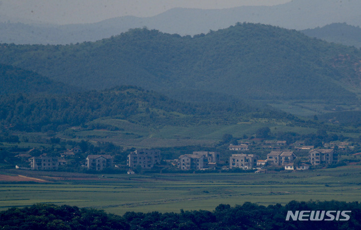 [파주=뉴시스] 정병혁 기자 = 한미연합연습 '을지프리덤실드'를 하루 앞둔 21일 경기 파주시 오두산통일전망대에서 바라본 북한 황해북도 개풍군 일대가 적막한 모습을 보이고 있다. 2022.08.21. [email protected]