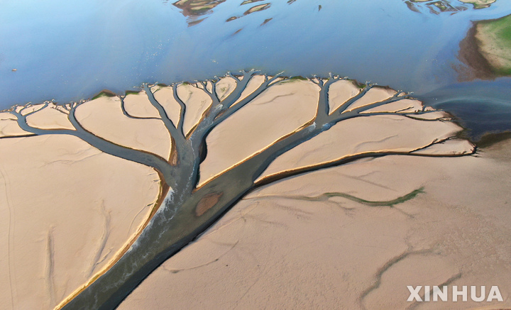 가뭄으로 나무처럼 보이는 포양호 바닥