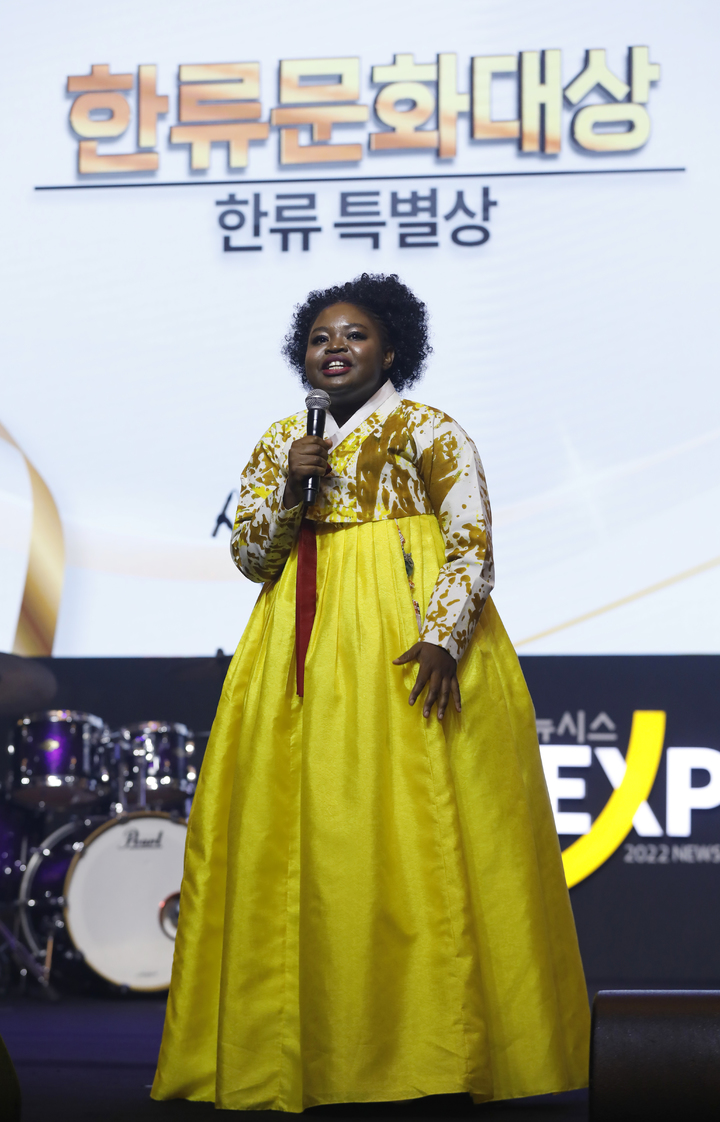 [2022 뉴시스 한류엑스포] 수상소감 밝히는 국악인 마포 로르