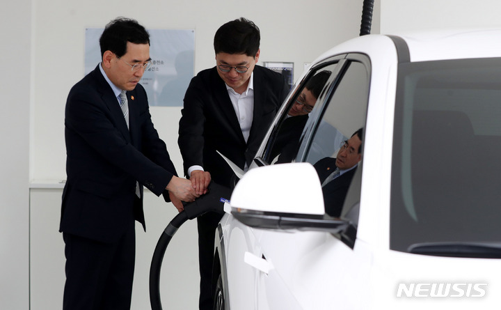 이창양 장관, 바나듐 이온 배터리 이용 초고속 전기차 충전소 방문