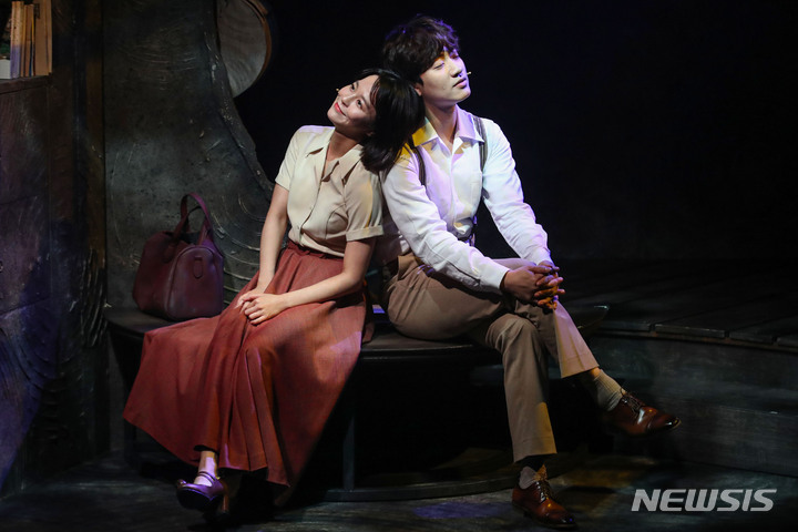 [서울=뉴시스] 권창회 기자 = 16일 오후 서울 종로구 대학로 드림아트센터에서 열린 뮤지컬 '라흐 헤스트' 프레스콜에서 배우 김주연(왼쪽), 안지환이 극 중 장면을 시연하고 있다. 2022.09.16. [email protected]