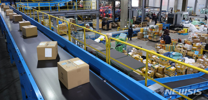 [인천=뉴시스] 고승민 기자 = 중국 최대 쇼핑 시즌 '광군제'를 나흘 앞둔 7일 인천본부세관 특송물류센터에 해외 직구 물품들이 쌓여 있다. (공동취재사진) 2022.11.07. [email protected]