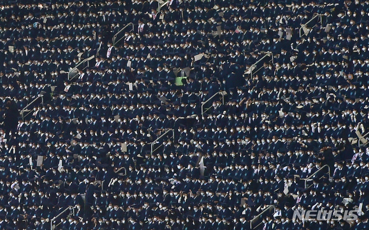 [대구=뉴시스] 이무열 기자 = 20일 오전 대구 수성구 대구스타디움에서 신천지예수교 증거장막성전(신천지예수교회) 시온기독교선교센터 113기 수료식이 신도 10만여 명이 참석한 가운데 진행되고 있다. 3년 만에 재개하는 대규모 대면 행사이며 지난 2년간 코로나19로 인해 온라인으로 비대면 수료식을 진행해왔다. 2022.11.20. [email protected]