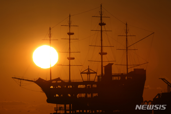 [강릉=뉴시스] 김경목 기자 = 2023년 계묘년 검은 토끼의 해가 다가오고 있다. 8일 오전 해돋이 명소인 강원 강릉시 강동면 정동진해변에서 바라본 수평선 위로 붉은 해가 떠오르고 있다. 2022.12.08. [email protected]