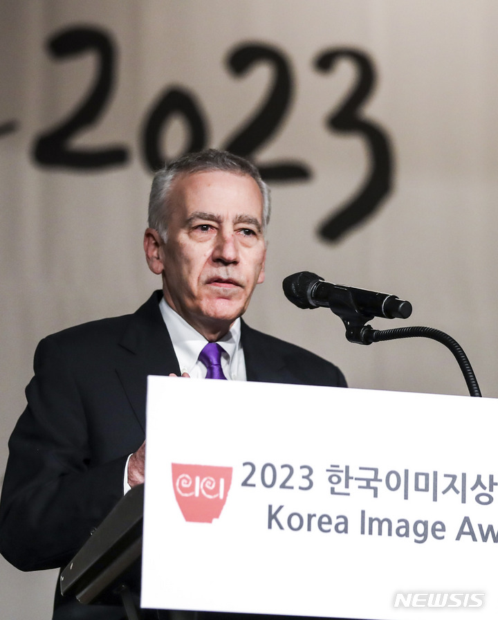 [서울=뉴시스] 정병혁 기자 = 필립 골드버그 주한미국 대사가 11일 오후 서울 강남구 인터컨티넨탈 서울코엑스에서 열린 ‘한국이미지상’ 시상식에서 축사를 하고 있다. 2023.01.11. [email protected]