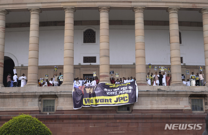아다니 그룹 진상 규명 요구하는 인도 야당 의원들