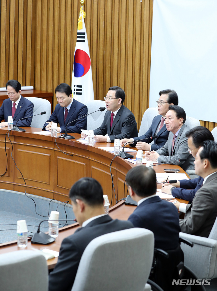 [서울=뉴시스] 전진환 기자 =  주호영 국민의힘 원내대표가 21일 오전 서울 여의도 국회에서 열린 원내대책회의에서 발언하고 있다.  2023.03.21. [email protected]