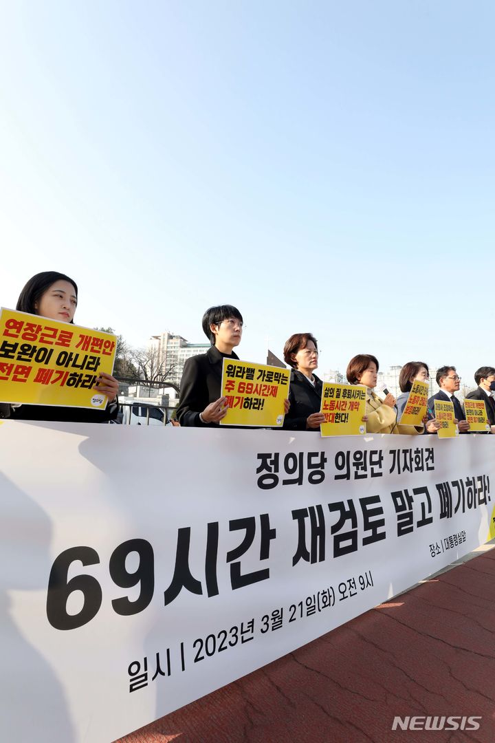 주 69시간 폐기 촉구 정의당 의원단 기자회견