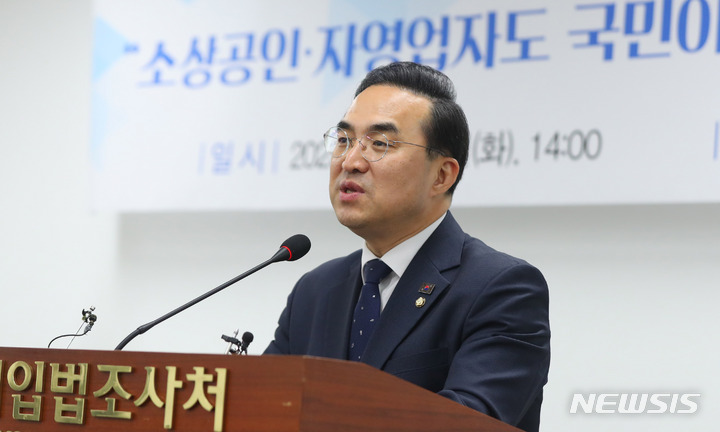 [서울=뉴시스] 추상철 기자 = 박홍근 더불어민주당 원내대표가 21일 오후 서울 여의도 국회입법조사처 대회의실에서 열린 '윤석열 정부 소상공인 정책평가 및 민주당 정책대안 모색 연속 세미나' 에 참석해 인사말을 하고 있다. 2023.03.21. [email protected]