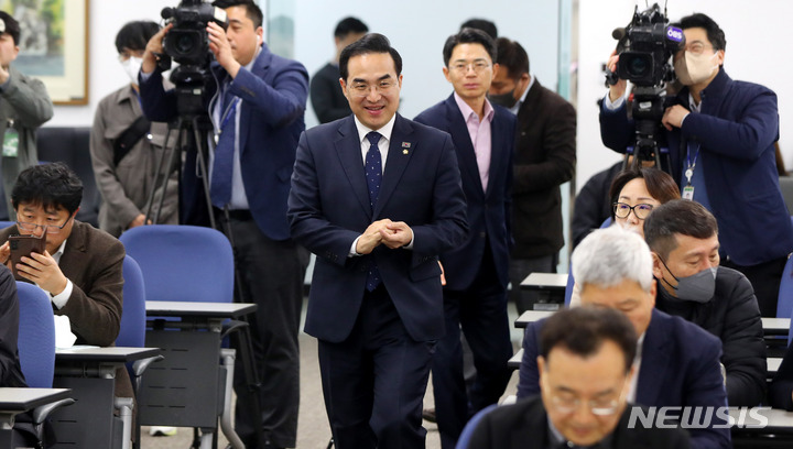 [서울=뉴시스] 추상철 기자 = 박홍근 더불어민주당 원내대표가 21일 오후 서울 여의도 국회입법조사처 대회의실에서 열린 '윤석열 정부 소상공인 정책평가 및 민주당 정책대안 모색 연속 세미나' 에 참석하고 있다. 2023.03.21. [email protected]
