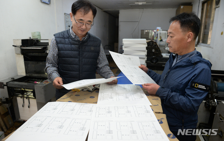 [울산=뉴시스] 배병수 기자 = 27일 오전 울산 남구 한 인쇄소에서 관계자들이 4.5 울산시 교육감 보궐선거 투표용지를 검수하고 있다. 2023.03.27. [email protected].