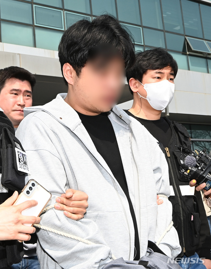 [용인=뉴시스] 김종택 기자 = 지난달 23일 필로폰 투약 혐의로 체포됐다가 법원의 구속영장 기각으로 풀려났지만 또다시 필로폰을 투약해 마약류 관리에 관한 법률 위반 혐의로 구속영장이 청구된 남경필 전 경기도지사의 장남 남모 씨가 1일 오후 구속전 피의자 심문(영장실질심사)에 출석하기 위해 경기도 용인동부경찰서에서 나오고 있다. 2023.04.01. [email protected]