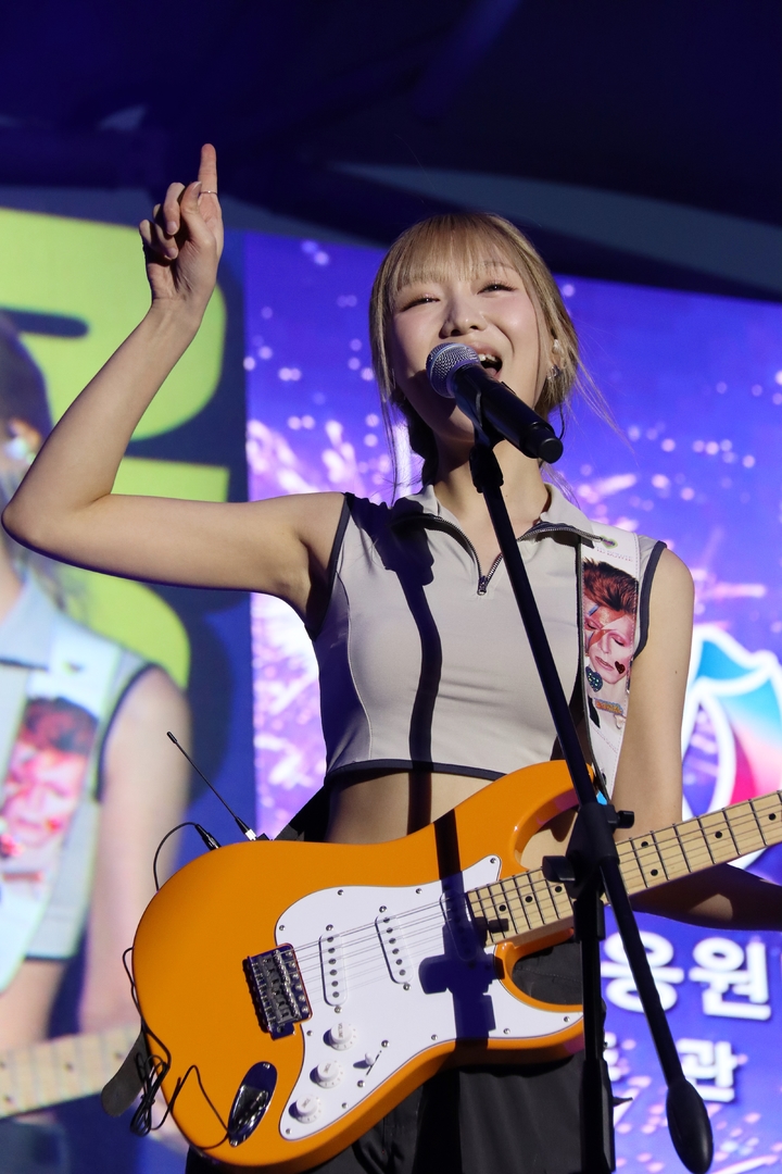 [구미=뉴시스] 박홍식 기자 = 그룹 '러블리즈' 멤버 겸 솔로가수 류수정이 11일 오후 경북 구미대학교 야외음악당에서 열린 제29회 가맛벌 체육대회 첫날 축하 공연에서 자신의 히트곡 '고백'을 열창하고 있다. (사진=구미대 제공) 2023.05.11 [email protected]