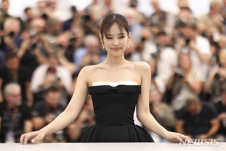[칸=AP/뉴시스] 블랙핑크의 제니가 23일(현지시각) 프랑스 남부 칸에서 열린 제76회 칸 국제영화제 '디 아이돌' 포토콜 행사에 참석해 포토타임을 갖고 있다. 2023.05.24.