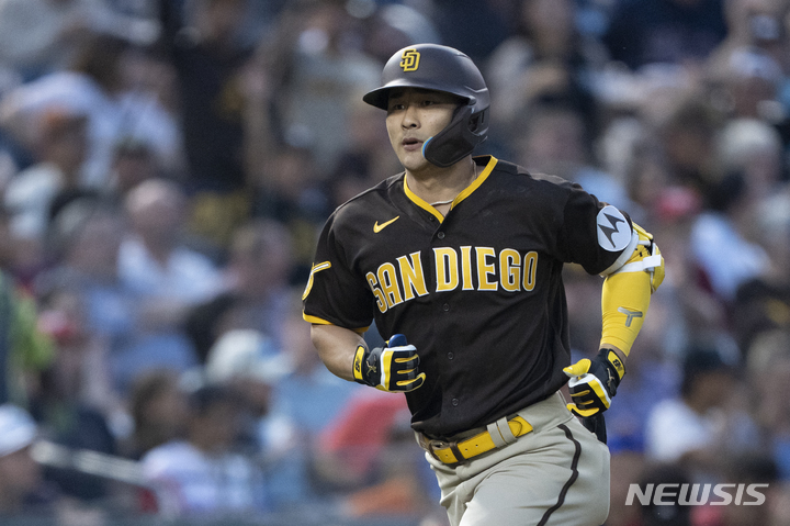[워싱턴=AP/뉴시스] 샌디에이고 파드리스의 김하성이 24일(현지시각) 미 워싱턴DC의 내셔널스파크에서 열린 2023 메이저리그 워싱턴 내셔널스와의 경기 5회 초 1점 홈런(시즌 5호)을 친 후 베이스를 돌고 있다. 김하성은 3타수 1안타 1타점 1득점으로 MLB 통산 100득점을 기록했고 팀은 3-5로 패했다. 2023.05.25.