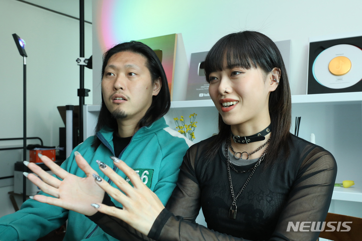 [서울=뉴시스] 김금보 기자 = 유튜버·틱톡 크리에이터로 유명세를 타고 있는 그레빠(왼쪽)와 신체리가 지난 25일 서울 마포구 자택에서 뉴시스와 인터뷰를 하고 있다. 2023.06.02. [email protected]