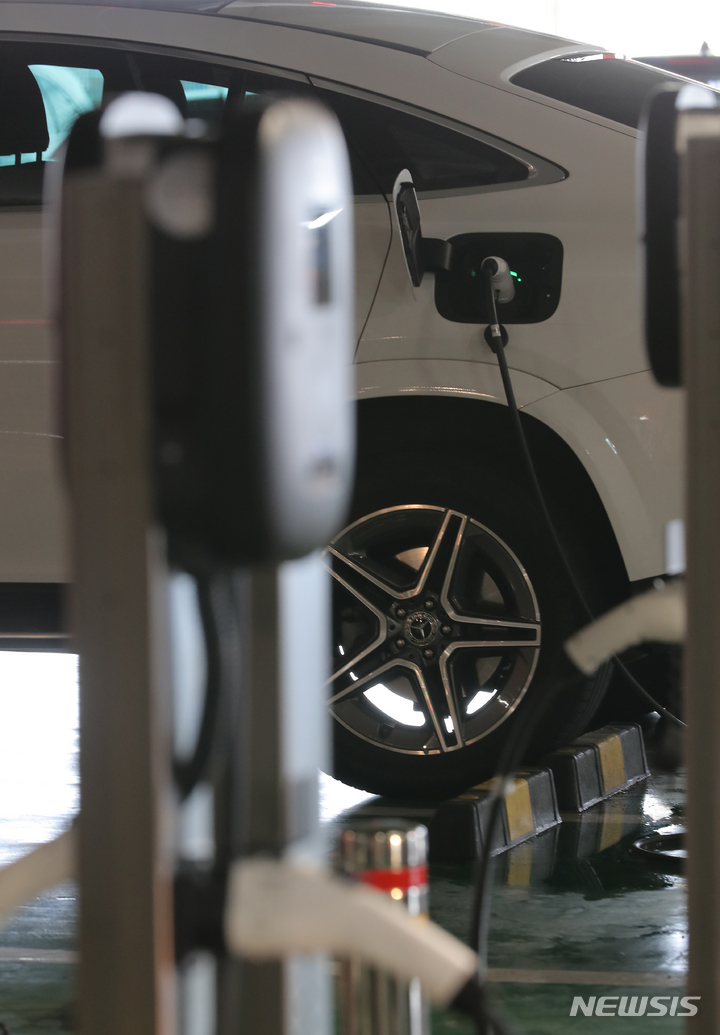 [서울=뉴시스] 김금보 기자 = 전기요금 인상 여파로 전기차 충전요금도 인상 여부에 대한 논의가 예정되고 있다. 사진은 29일 서울시내 한 전기차 충전기. 2023.05.29. [email protected]