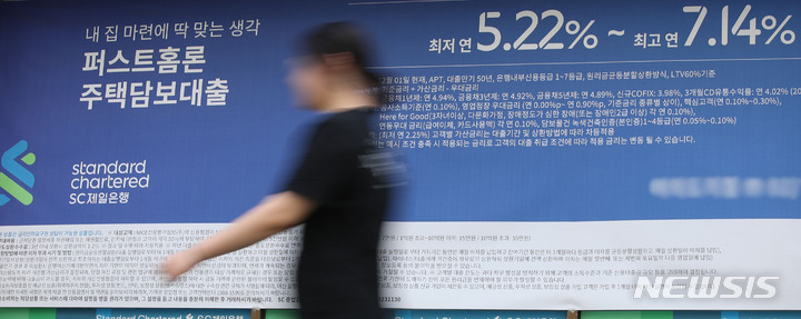 [서울=뉴시스] 조수정 기자 = 한국은행이 오는 30일 발간하는 '2023년 4월 금융기관 가중평균금리'부터 예금 은행의 고정·변동 주택담보대출·전세자금대출 금리와 비중 공표를 시작한다. 사진은 29일 서울 시내 한 은행의 주택담보대출 금리 안내문. 2023.05.29. [email protected]