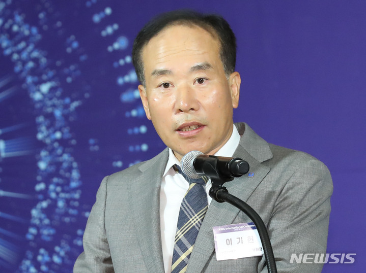 [서울=뉴시스] 조수정 기자 = 이기헌 한국상장사협의회 부회장이 1일 오후 서울 영등포구 63빌딩에서 열린 2023 XBRL 국제컨퍼런스에서 축사하고 있다. 2023.06.01. [email protected]