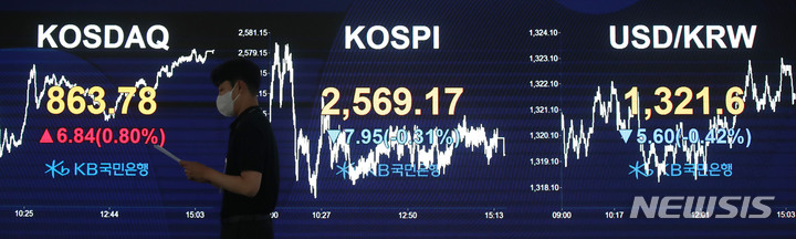 [서울=뉴시스] 고범준 기자 = 코스피가 전 거래일(2577.12)보다 7.95포인트(0.31%) 하락한 2569.17, 코스닥지수는 전 거래일(856.94)보다 6.84포인트(0.80%) 상승한 863.78에 장을 마감한 1일 오후 서울 영등포구 여의도 KB국민은행 스마트딜링룸에서 직원이 업무를 보고 있다. 이날 서울 외환시장에서 원·달러 환율은 전 거래일(1327.2)보다 5.6원 낮아진 1321.6원에 마감했다. 2023.06.01. [email protected]