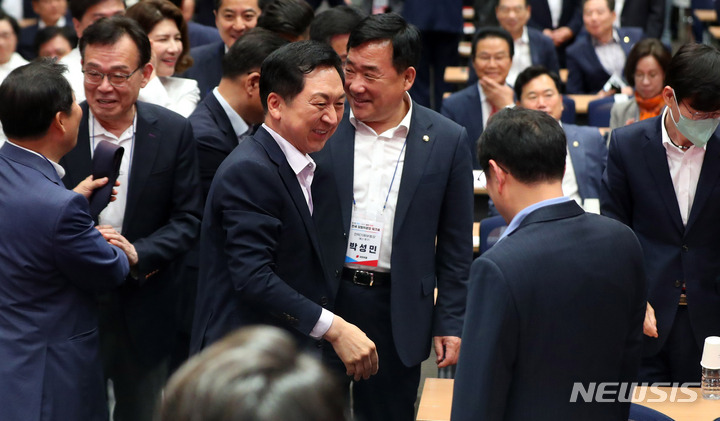[서울=뉴시스] 추상철 기자 = 김기현 국민의힘 당 대표가 2일 오전 서울 여의도 중소기업중앙회에서 열린 '전국 당협위원장 워크숍'에 참석하고 있다. 2023.06.02. [email protected]