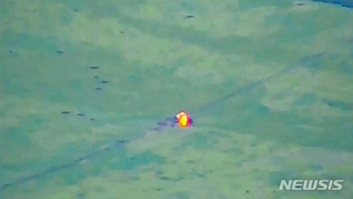 [도네츠크=AP/뉴시스] 러시아 국방부가 5일(현지시각) 제공한 영상 캡처 사진에 우크라이나 모처에서 우크라이나 군용 차량이 타격받아 화염이 솟고 있다. 러시아 국방부는 러시아군이 도네츠크 남부에서 우크라이나군의 공격을 저지했다고 밝혔다. 2023.06.05.