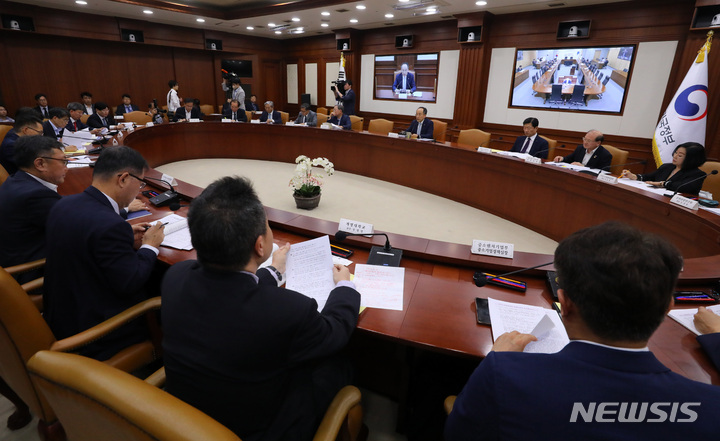 [서울=뉴시스] 배훈식 기자 = 추경호 경제부총리 겸 기획재정부 장관이 5일 오후 서울 종로구 정부서울청사에서 서비스산업발전 TF 전체회의를 하고 있다. 2023.06.05. [email protected]