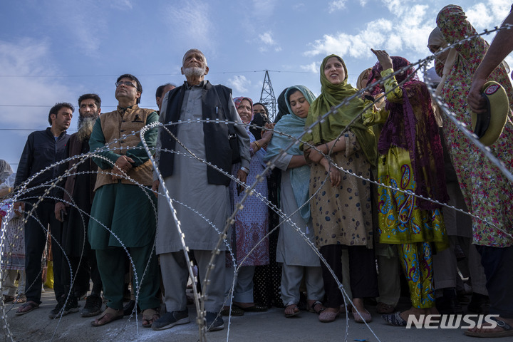 하지 순례 떠나는 가족 배웅하는 카슈미르 무슬림들