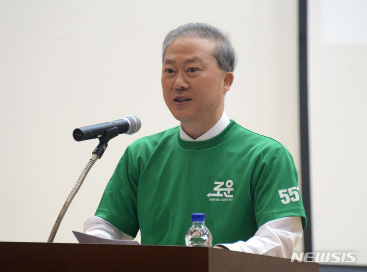 [전주=뉴시스] 김얼 기자 = 양오봉 전북대학교 총장이 21일 전북 전주시 전북대학교 전대학술문화관 대강당에서 열린 2023학년도 하계 농촌봉사활동 '전대 포레스트' 발대식에 참석해 축사하고 있다. 2023.06.21. [email protected]