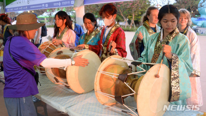 한국 전통 악기 배우는 태국 스카우트 대원들