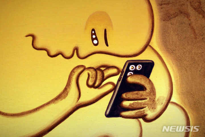 [서울=뉴시스] 박진희 기자 = 학고재 갤러리는 9일 서울 종로구 학고재 본관에서 사실적인 형상회화로 우리의 삶을 다루는 이우성 작가의 개인전 '여기 앉아보세요' 기자간담회를 갖고 주요 작품을 선보이고 있다. 사진은 작품 '지금은 작업중 입니다' 부분 확대. 2023.08.09. [email protected]