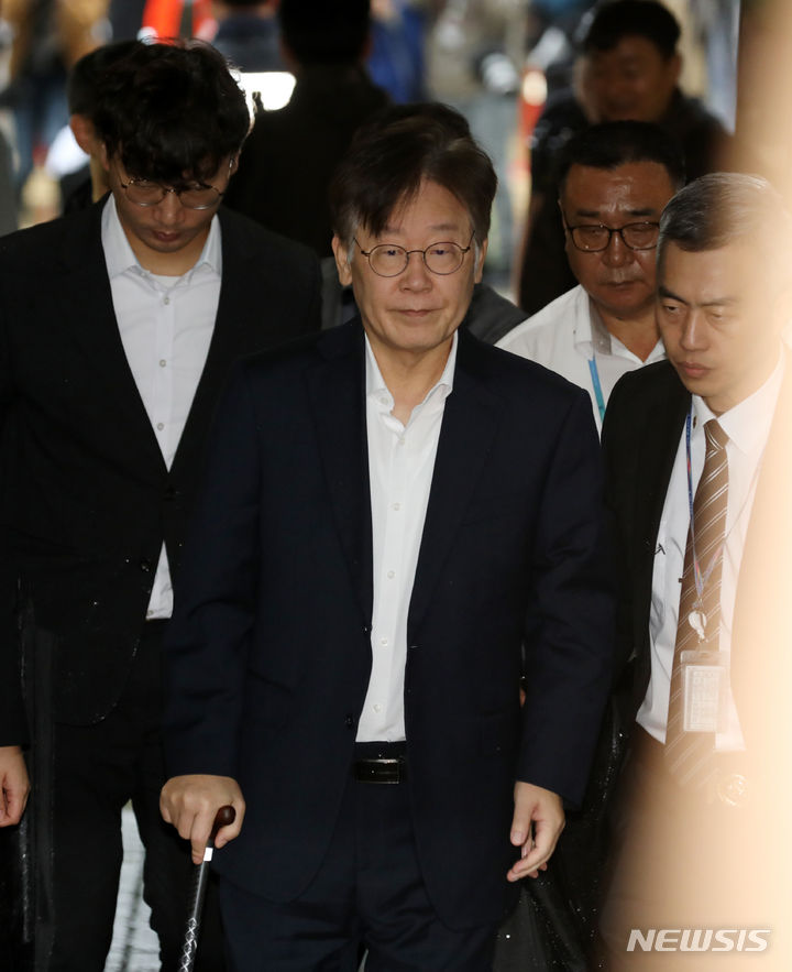 [서울=뉴시스] 김명년 기자 = 특정경제범죄 가중처벌 등에 관한 법률 위반, 위증교사 등의 혐의를 받는 이재명 더불어민주당 대표가 26일 오전 서울 서초구 서울중앙지방법원에서 열린 구속 전 피의자 심문(영장실질심사)에 출석하고 있다. 2023.09.26. [email protected]