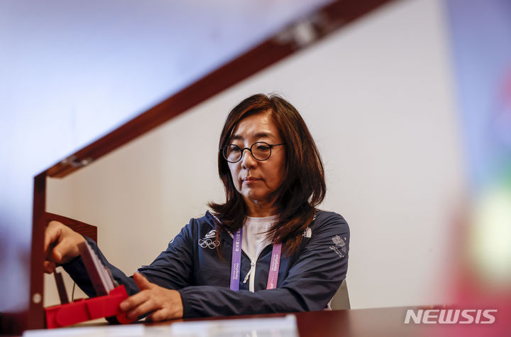 [항저우=뉴시스] 정병혁 기자 = 김혜영이 27일 중국 항저우 치위안 체스 홀에서 열린 2022 항저우 아시안게임 브리지 예선 싱가포르와의 경기를 위해 대기하고 있다. 2023.09.27. [email protected]