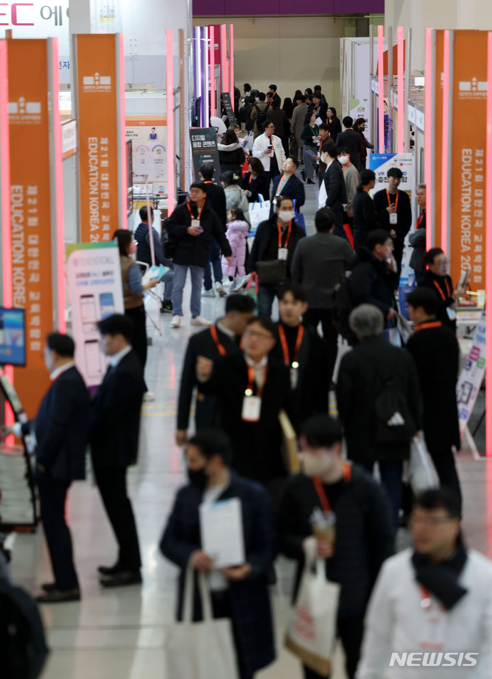 [서울=뉴시스] 홍효식 기자 = 17일 서울 강남구 코엑스에서 열린 제21회 대한민국 교육박람회를 찾은 관람객들이 부스를 둘러보고 있다. 2024.01.17. [email protected]