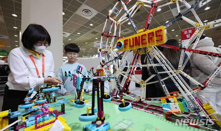[서울=뉴시스] 홍효식 기자 = 17일 서울 강남구 코엑스에서 열린 제21회 대한민국 교육박람회를 찾은 어린이가 인공지능(AI) 놀이공원 체험을 하고 있다. 2024.01.17. [email protected]