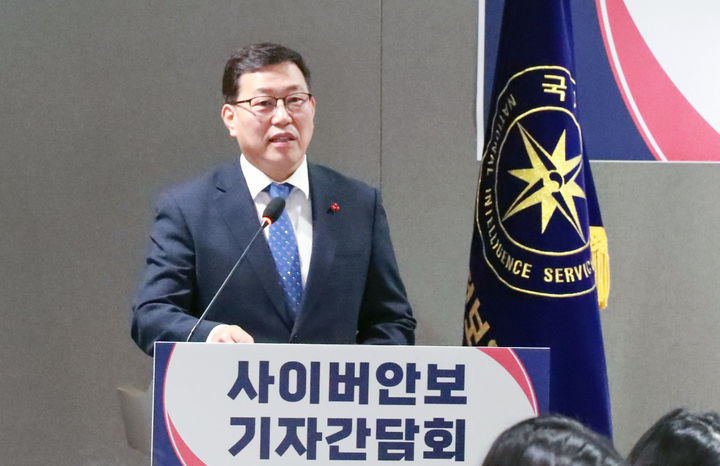[서울=뉴시스] 홍효식 기자 = 백종욱 국가정보원 제3차장이 24일 경기도 성남 국가사이버안보협력센터에서 '사이버 위협 동향과 국정원의 대응활동' 관련 사이버 안보 기자간담회를 하고 있다. (사진=국정원 제공) 2024.01.24. [email protected] *재판매 및 DB 금지