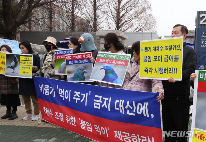 비둘기 먹이 주기 금지 대신 ‘불임 먹이 급여’ 촉구 기자회견