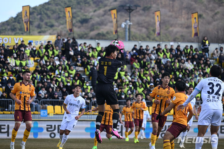[광주=뉴시스] 이영주 기자 = 2일 오후 광주 서구 광주축구전용구장에서 열린 하나원큐 K리그1 2024 1라운드 광주FC와 서울FC의 경기, 광주FC 김경민이 공을 잡고 있다. 2024.03.02. [email protected]