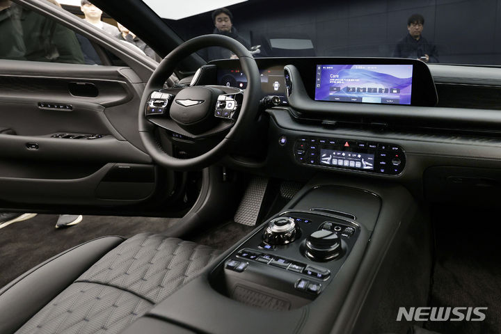 [용인=뉴시스] 최동준 기자 = 현대자동차가 지난 14일 경기 용인시 제네시스 수지전시관에서 '제네시스 G90 블랙 미디어 프리뷰'를 열고 제네시스 G90을 공개하고 있다. 2024.03.21. [email protected]