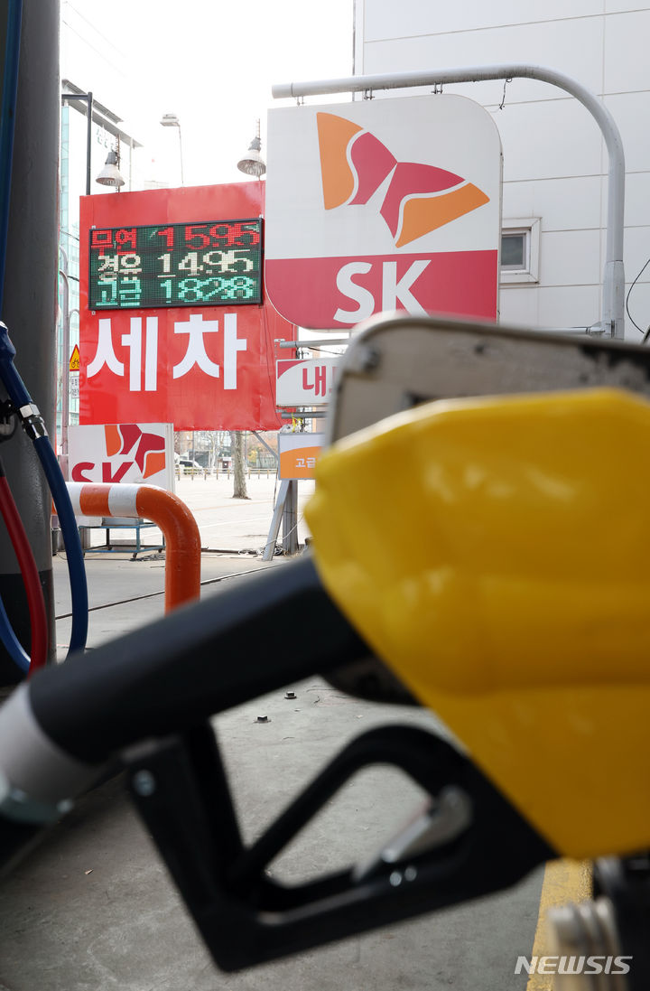 [서울=뉴시스] 고승민 기자 = 오피넷에 따르면 3월 셋째주 전국 주유소 휘발유 1리터 평균 판매가격이 전주보다 1.1원 하락한 1,638.2원을 기록했다. 경유도 1.5원 하락한 1,538.2원을 나타냈다. 대한석유협회는 다음주 이후부터 국제유가 상승 영향을 받아 기름값이 다시 상승할 것으로 예상했다. 사진은 24일 서울의 한 주유소 모습. 2024.03.24. [email protected]