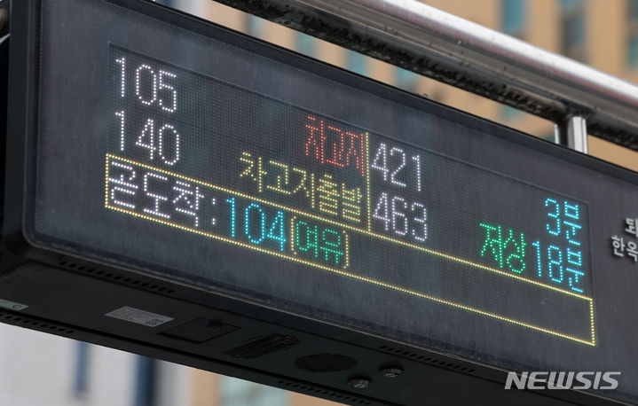 [서울=뉴시스] 김명년 기자 = 서울 시내버스 파업이 종료된 28일 오후 서울 중구 한 버스정류장 전광판에 차고지 출발 안내문구가 표시되고 있다. 2024.03.28. [email protected]