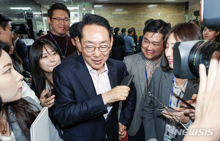 [서울=뉴시스] 조성봉 기자= 김도읍 국민의힘 의원이 16일 서울 여의도 국회에서 열린 제22대 국회 국민의힘·국민의미래 당선자총회를 마치고 취재진의 질문에 답변하고 있다.(공동취재) 2024.04.16. [email protected]