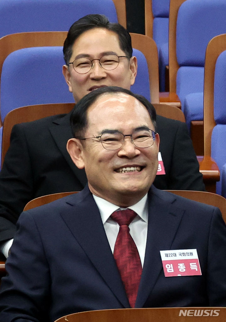 [서울=뉴시스] 조성봉 기자= 16일 오전 서울 여의도 국회에서 열린 제22대 국회 국민의힘·국민의미래 당선자총회에서 임종득 당선인이 밝은 표정을 짓고 있다. 2024.04.16. [email protected]