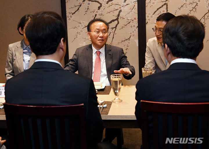 [서울=뉴시스] 국회사진기자단 = 윤재옥 국민의힘 원내대표 겸 당대표 권한대행이 17일 오후 서울 여의도 한 식당에서 열린 초선 지역구 당선자 오찬 간담회에 참석해 발언하고 있다. 2024.04.17. [email protected]