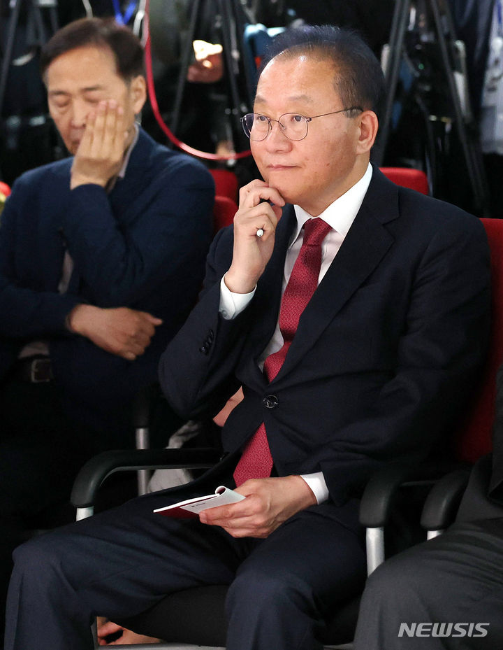 [서울=뉴시스] 추상철 기자 = 윤재옥 국민의힘 당대표 권한대행 겸 원내대표가 25일 오전 서울 여의도 국민의힘 중앙당사에서 열린 '제22대 총선이 남긴 과제들' 총선평가 토론회에서 굳은표정을 짓고 있다. 2024.04.25. [email protected]
