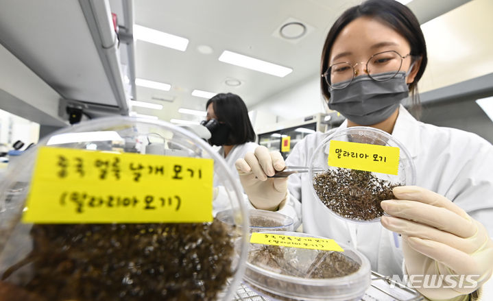 [수원=뉴시스] 김종택기자 = 세계보건기구(WHO)가 지정한 ‘세계 말라리아의 날’인 25일 경기도 수원시 권선구 경기도보건환경연구원에서 연구원들이 채집한 모기를 분류하고 있다. 작년 국내 말라리아 환자는 672명으로 이중 409명(60.9%)이 경기도에서 발생했다. 경기를 비롯해 인천, 서울, 강원에서 주로 발생하고 있는 말라리아는 기온이 오르기 시작하는 4월부터 10월 사이에 집중된다. 2024.04.25. [email protected]
