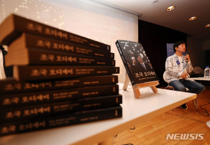 [서울=뉴시스] 김명년 기자 = 26일 저녁 서울 서대문구 연세대학교 공학관 대광당에서 '창단 선언부터 승리까지 1368시간의 기록 조국 오디세이 출간 기념 북콘서트'가 열리고 있다. 2024.04.26. [email protected]