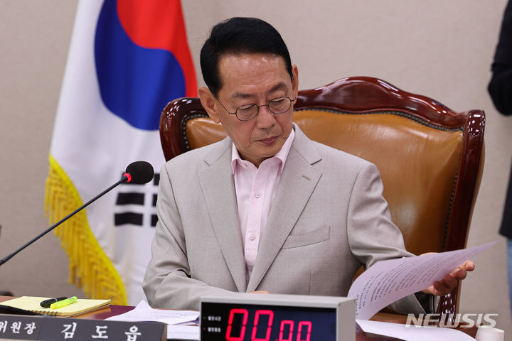 [서울=뉴시스] 권창회 기자 = 김도읍 국회 법제사법위원회 위원장이 2일 오전 서울 여의도 국회에서 열린 여·야 합의된 본회의 상정 안건에 대한 법제사법위원회 전체회의에서 자료를 살펴보고 있다. 2024.05.02. [email protected]