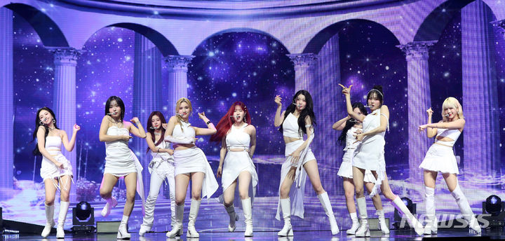 [서울=뉴시스] 김혜진 기자 = 그룹 케플러가 3일 오후 서울 광진구 예스24라이브홀에서 열린 첫 번째 정규앨범 '켑원고잉 온(Kep1going On)' 발매 기념 쇼케이스에서 무대를 선보이고 있다.