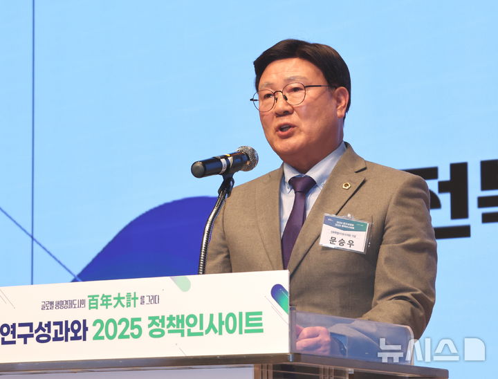 [전주=뉴시스] 김얼 기자 = 문승우 전북특별자치도의장이 26일 전북 전주시 전주대학교에서 열린 전북연구원 연구성과 공유회에 참석해 인사말을 하고 있다. 2025.02.26. [email protected]